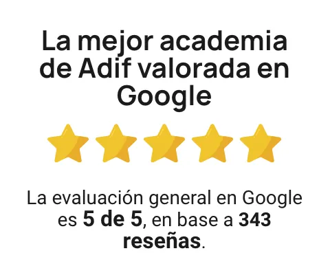 Porque somos un equipo apasionado del ferrocarril y comprometido exclusivamente en que consigas tu plaza en ADIF. Nuestra metodología aúna el trabajo constante y el esfuerzo diario para que consigas tu objetivo: la plaza. Si eres una persona comprometida y trabajadora y realmente quieres formar parte de ADIF ¡esta es tu academia! Con tu trabajo, nuestra experiencia y acompañamiento obtendrás los resultados más sobresalientes.